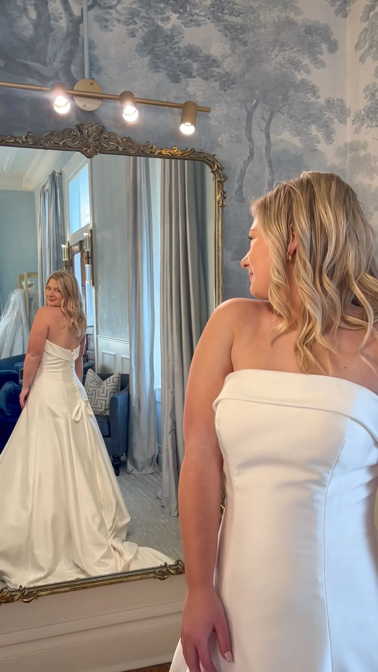 Brides may bring up to 4 of their closest friends and family to the appointment. Invite those who will lift you up with compliments and encourage you throughout the entire process.
